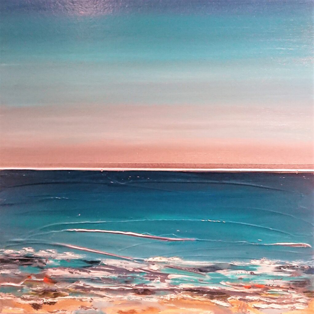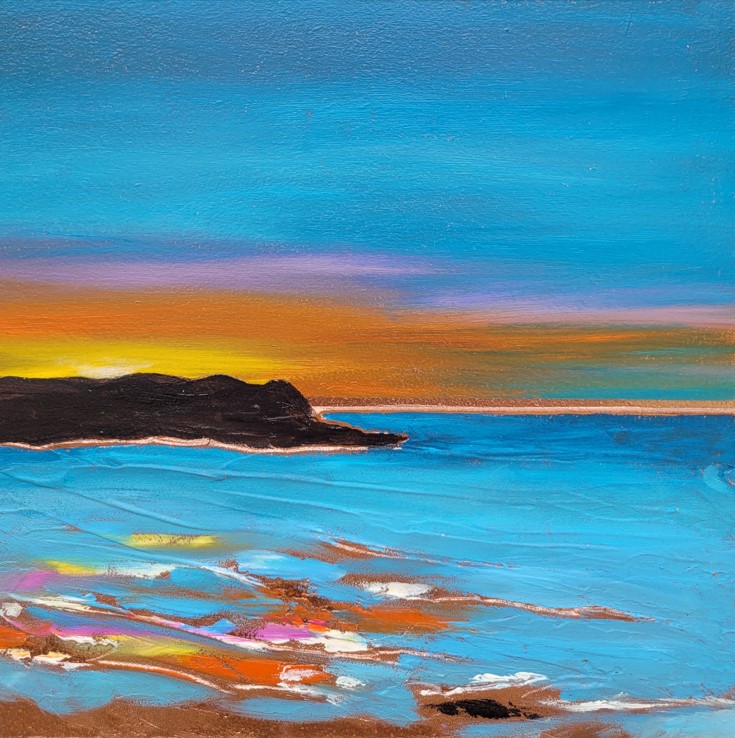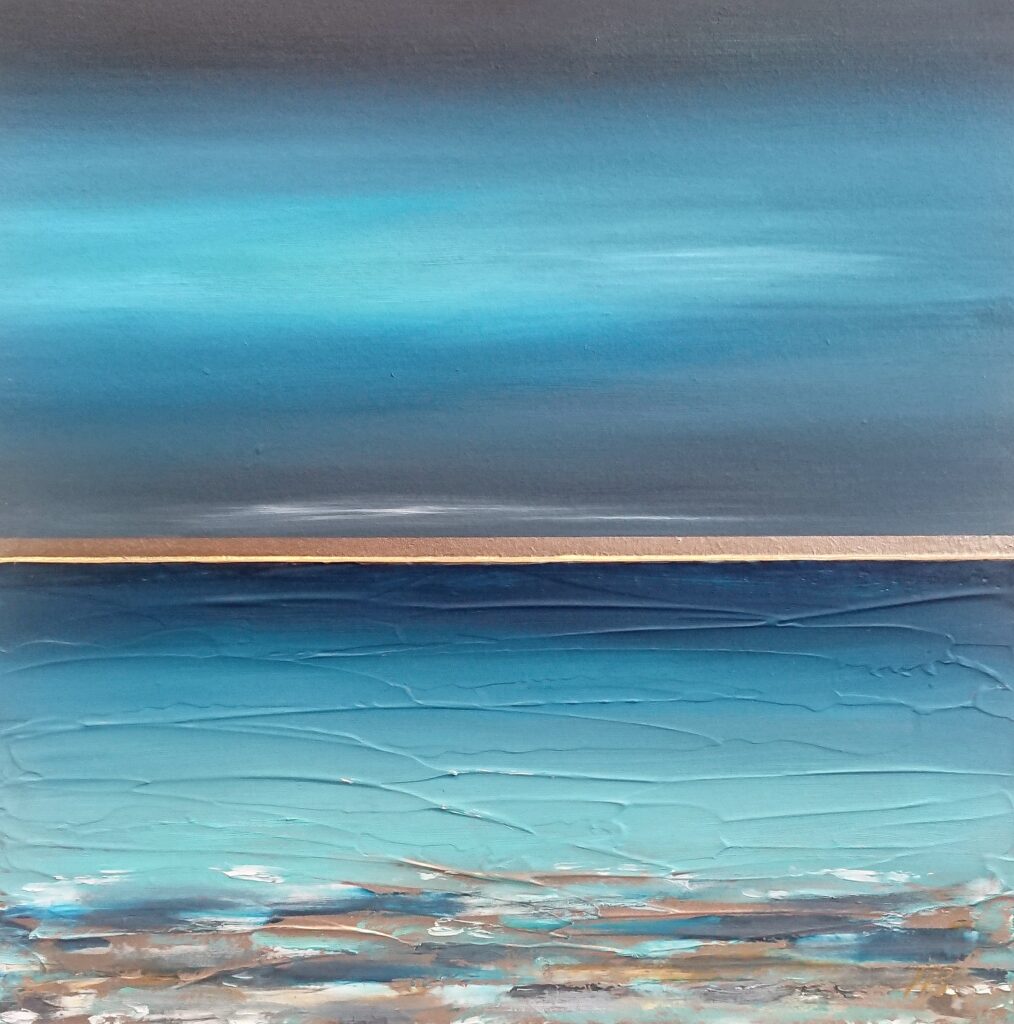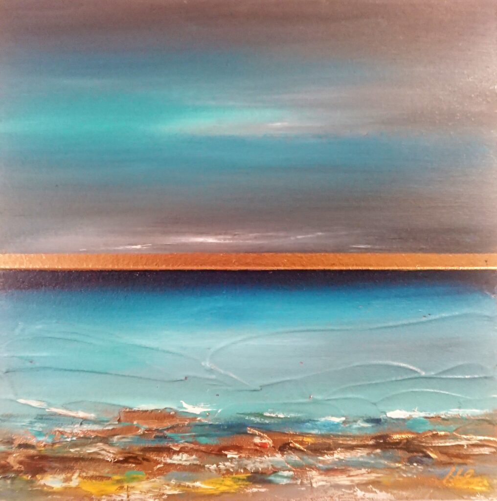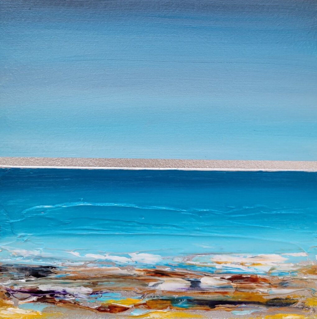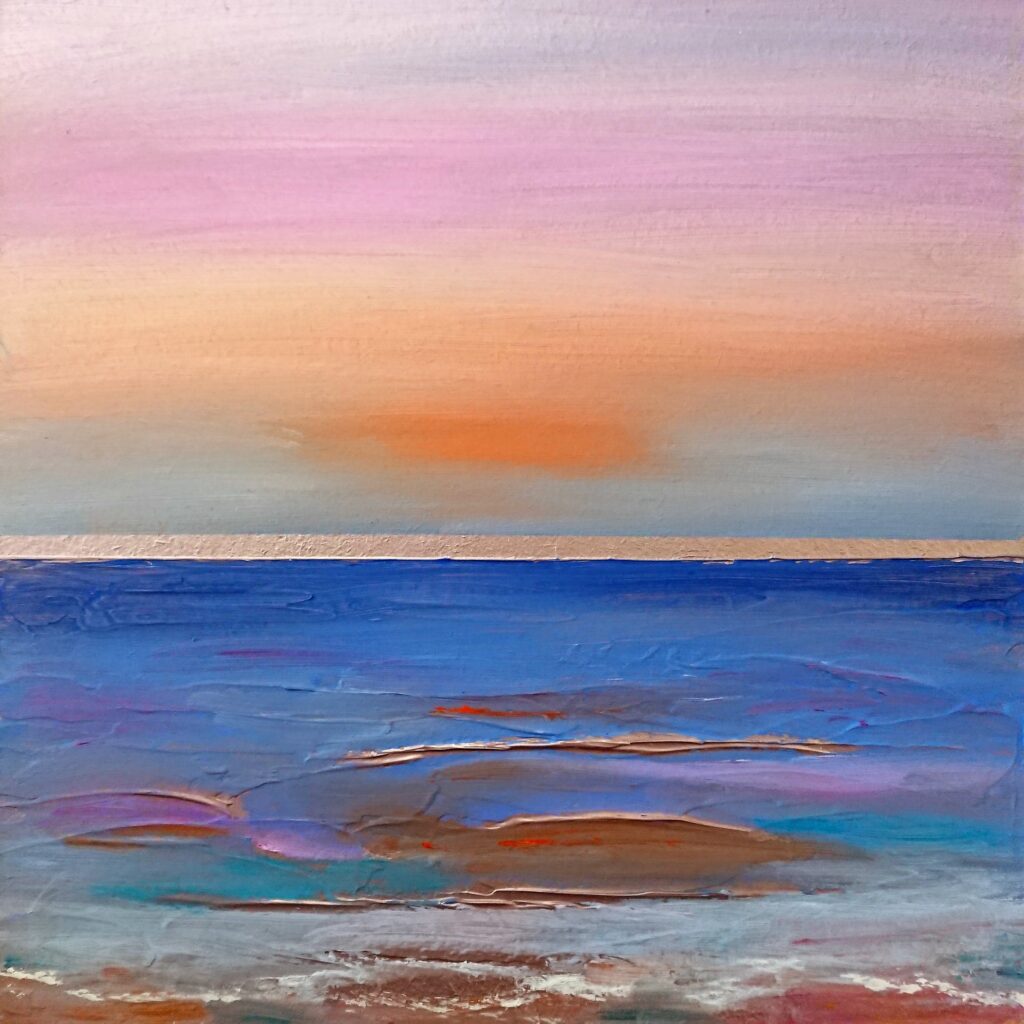 Heather Short is the newest artist to Art House Gallery. Her work is completely different from anything else that we have seen and so, late in 2025, we invited her to join our gallery. Working with oils, gold leaf and even with fragments of glass, she creates work that sparkles and shimmers like the sun and the sea and sand of St. Ives. She is constantly stunned by the beauty of St. Ives with the variety of beaches, seascapes and sky views, glimmering in light that differs every day. Heather takes early morning swims and notices all of the astounding changes in her surroundings. These views inspire her to create work that is alive with passion, vitalilty and vision. We are pleased to welcome her into our Art House family.