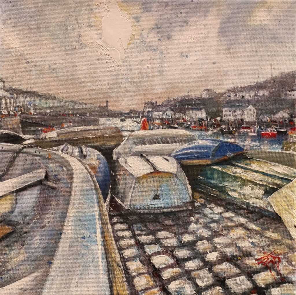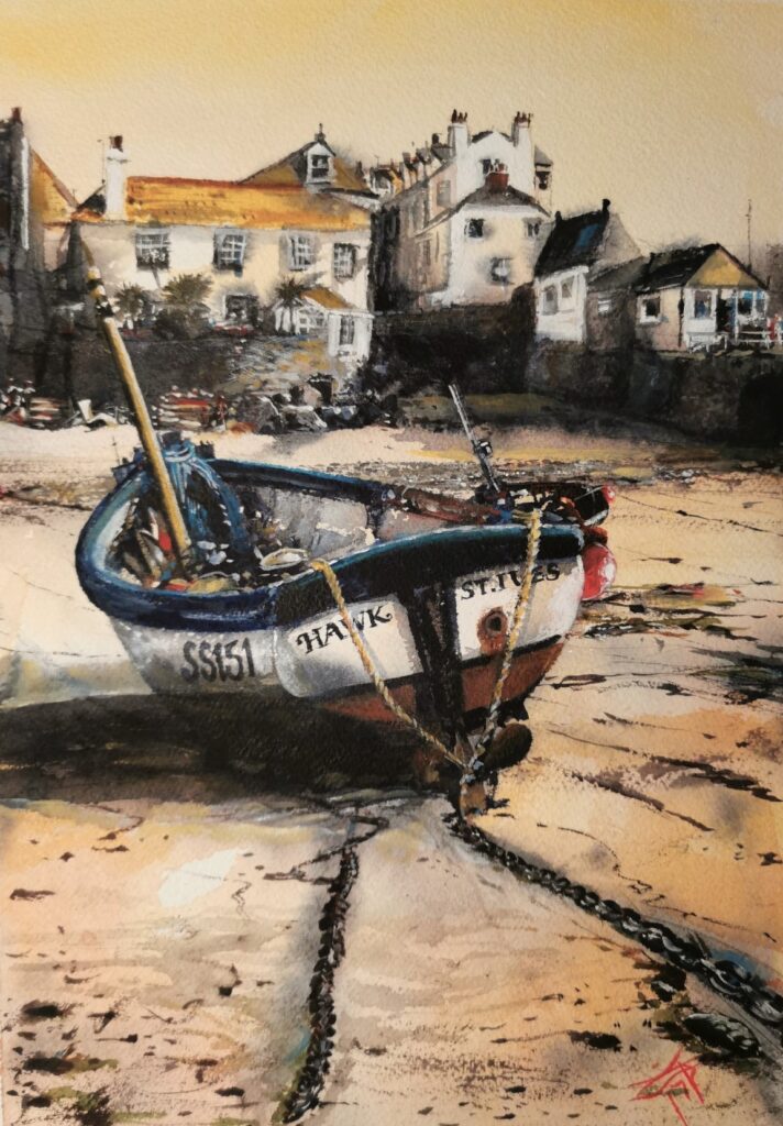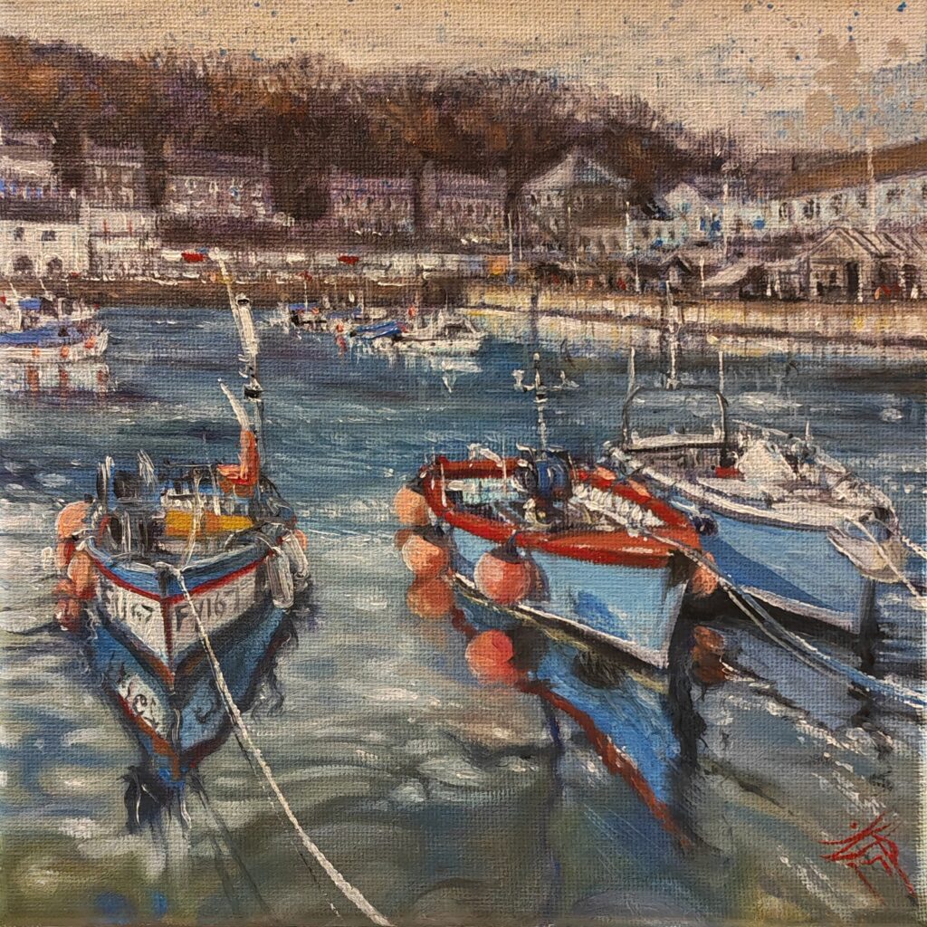 Keran Gilmore is a native of St. Ives, Cornwall, and has a long history with both the fishing and art community in the town. Her relationship with her subjects is unique as she knows the area so well, bringing that local knowledge into her paintings. Keran has always spent a lot of time outdoors and knows every nook and cranny of St. Ives; and she brings true intimacy into her painting. Her work is alive and dynamic and fresh and is expressed in both watercolour and acrylic, resulting in masterful impressions. Keran’s work is exclusive to Art House Gallery.